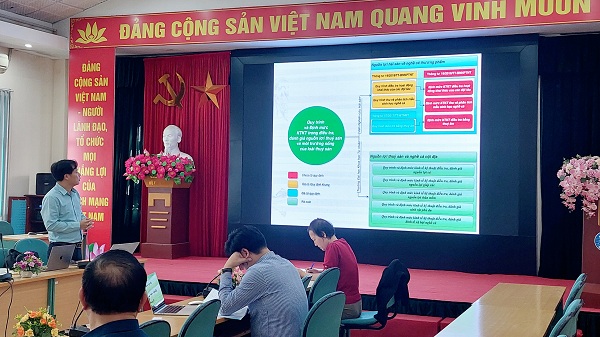 TS. Vũ Việt Hà, chủ nhiệm nhiệm vụ trình bày báo cáo tại Hội nghị