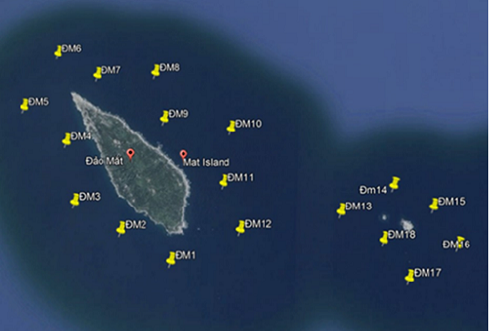 | Hình 1. Khu vực khảo sát vùng biển Hòn Ngư | Hình 2. Khu vực khảo sát vùng biển Đảo Mắt |