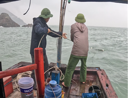 | Hình 3. Khảo sát bằng phương pháp lặn SCUBA | Hình 4. Điều tra, thu thập mẫu sinh vật phù du |